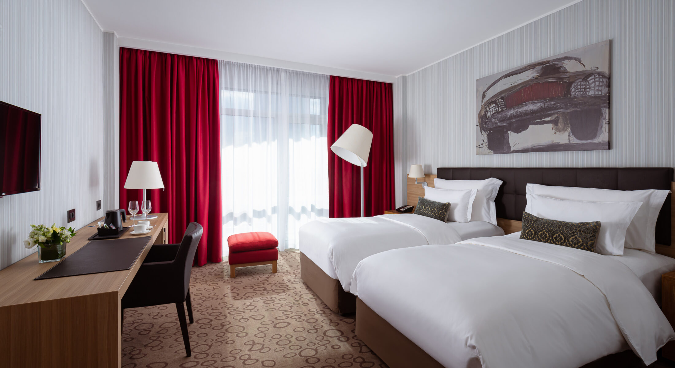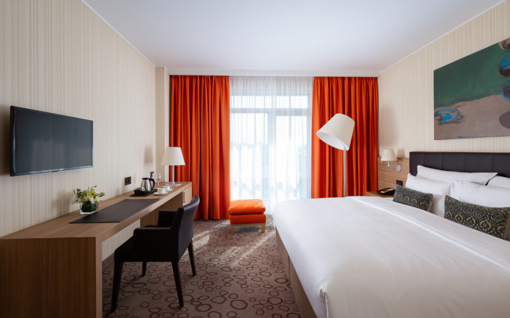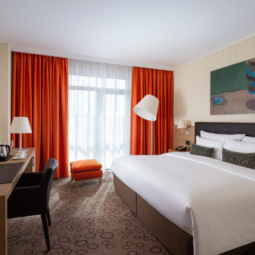 Гостей ожидают удобные светлые комнаты с итальянской мебелью и дизайном в стилистике «Времена года» с цветовыми акцентами теплых тонов. Каждый номер оснащен рабочей зоной, беспроводным интернетом, спутниковым телевидением с возможностью просмотра российских и иностранных каналов.